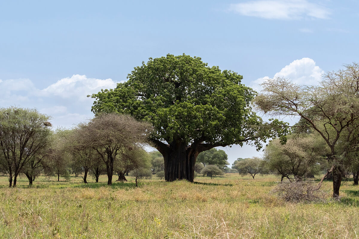 Tarangire National Park is the park of baobabs and elephants. The silhouette of the large baobab trees shapes a landscape where it’s not hard to find large groups of elephants, who approach these trees to scratch themselves or sharpen their tusks.